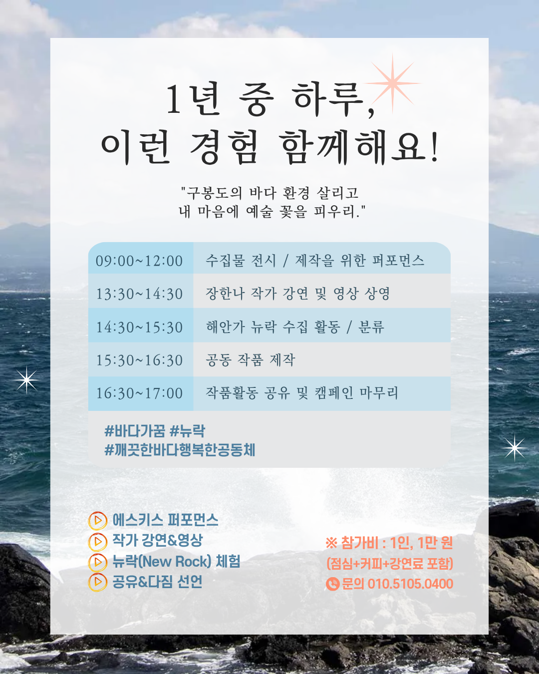 이번 하루의 경험은 단순한 체험을 넘어, 바다를 살리고 마음에 예술의 꽃을 피우는 뜻깊은 시간이 될 것 같습니다!
